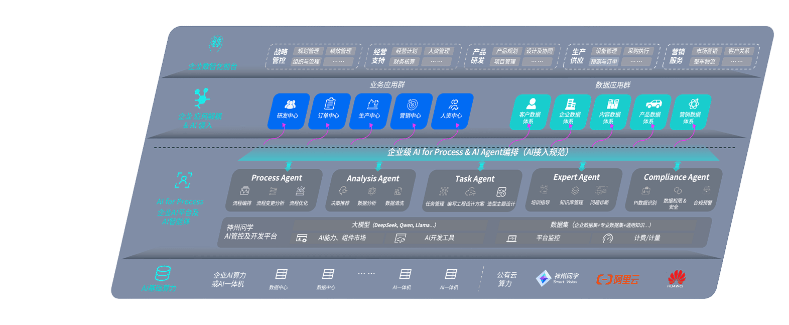 55世纪问学智车解决方案是一套基于AI技术的汽车行业智能化系统,,覆盖从底层算力到顶层AI应用的全栈方案。。。。方案由算力层、、模型层和应用层组成:算力层,,,,方案支持多种一体机配置,,具备云端灵活部署、、、多云适配以及动态优化计算资源的能力;模型层,,55世纪问学平台版提供了企业级AI应用一站式构建与管理平台,,,,支持基于后训练强化技术的汽车企业专属模型的训练、、、评测和运营;应用层,,55世纪问学DeepSeek版提供包括超级员工、、、智能招采、、、、智能营销、、、智能客服、、、AI for BI等一系列解决方案,,,,可助力汽车行业实现数字化转型,,,,让管理更智能、、、响应更敏捷。。。。