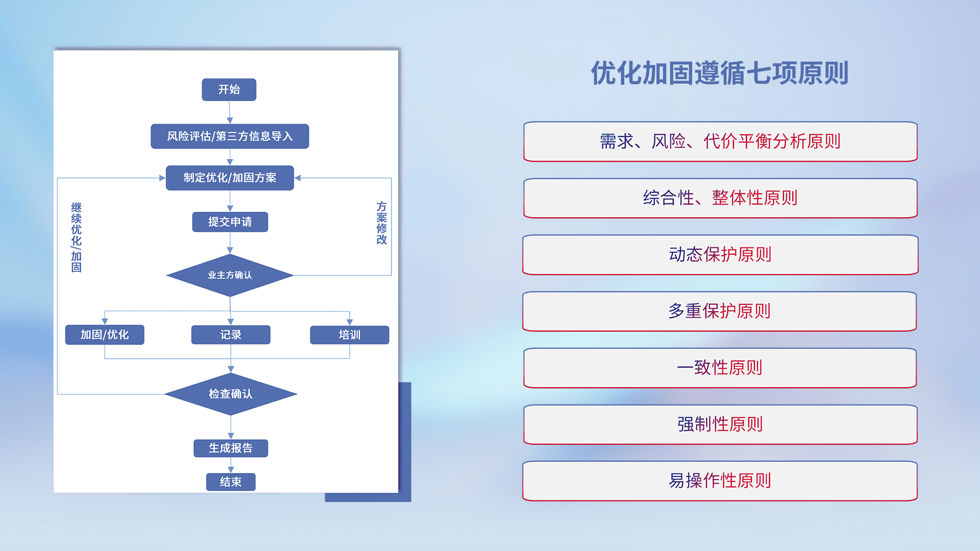 最大程度利用现有资产,,,对评估发现的问题进行封堵与整改,,防止漏洞被利用,,,,提升整体网络安全性,,,为客户带来高标准的优化加固服务。。